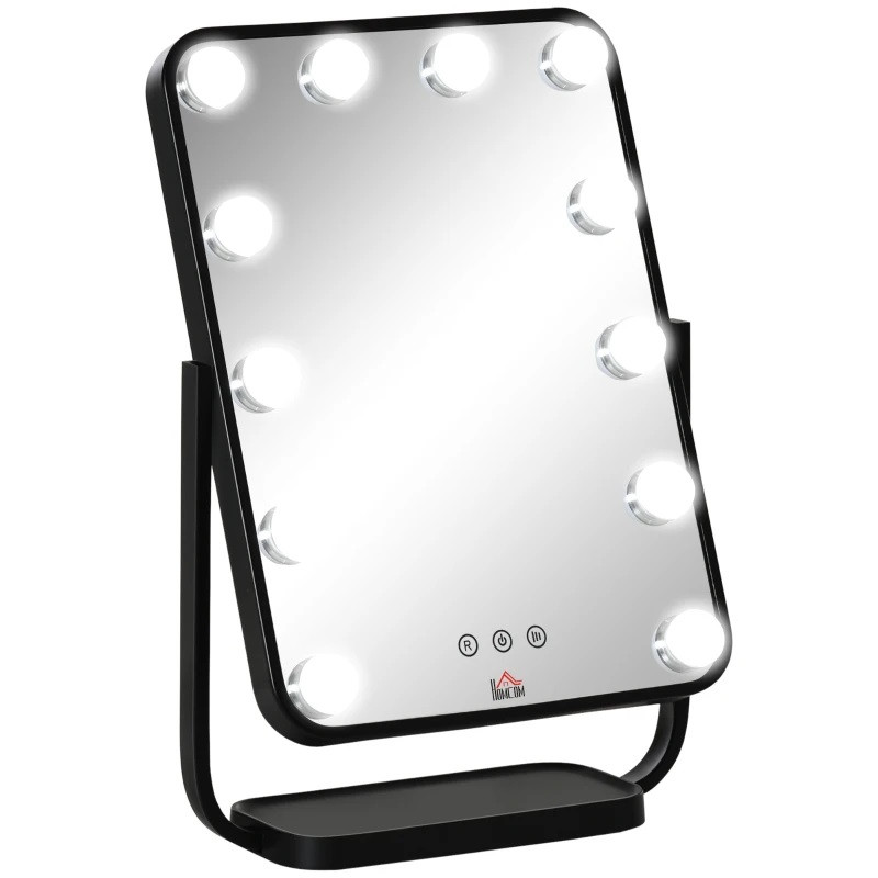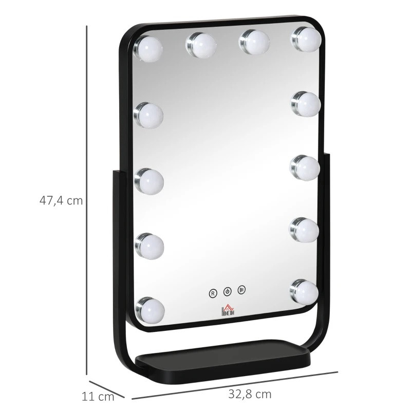Această oglindă de masă va adăuga o notă de farmec măsuței dvs. de toaletă. 12 lumini LED oferă iluminare optimă pentru aplicarea machiajului și îngrijirea feței. Iluminatul poate fi controlat cu ușurință cu 3 butoane. Odată ce deschideți această oglindă cosmetică hollywoodiană, aceasta va selecta ultimele setări pe care le-ați folosit, astfel încât să nu mai trebuiască să le setați din nou. Unghiul oglinzii poate fi reglat în funcție de preferințele și nevoile dumneavoastră. Această oglindă de masă este un adevărat decor al oricărui dulap.
