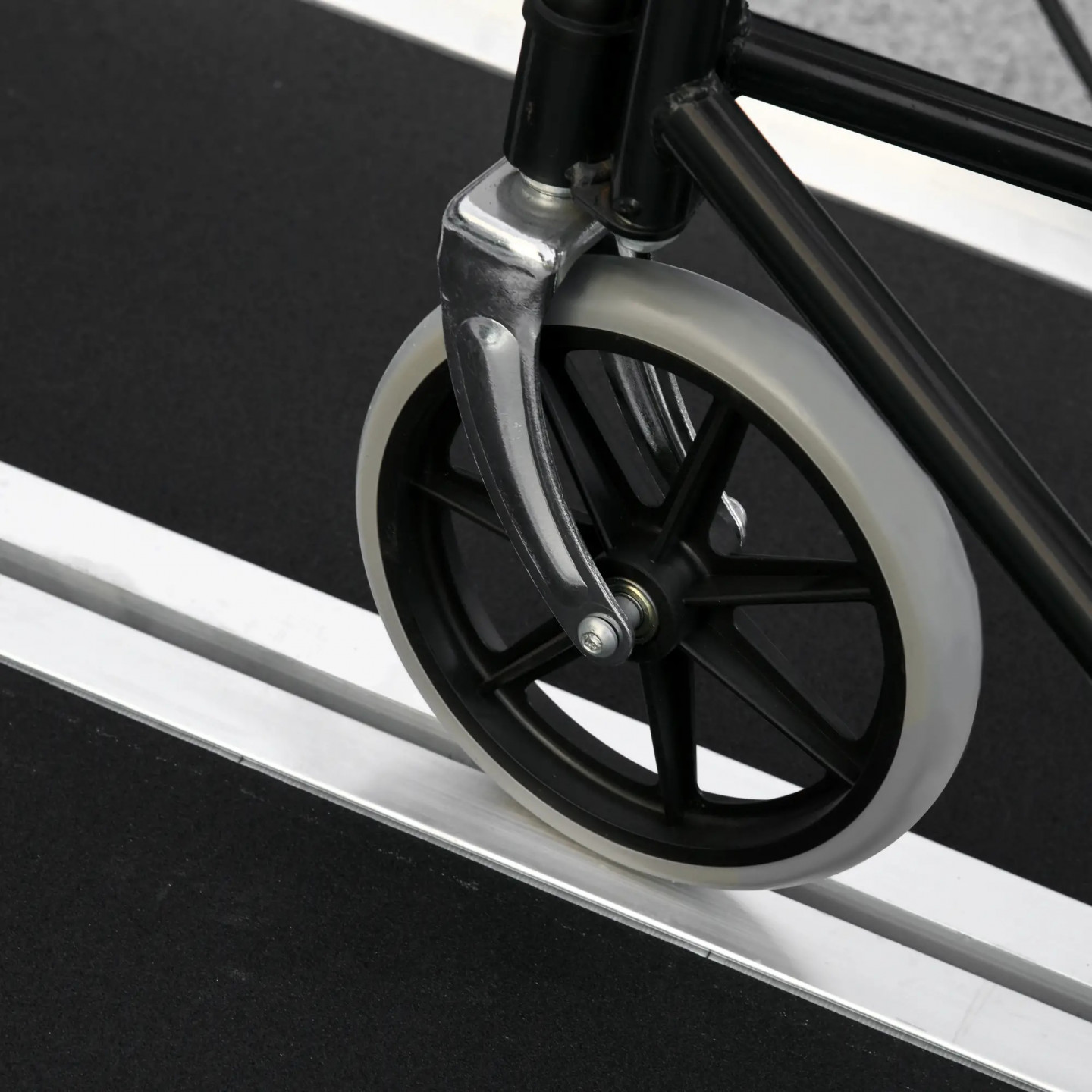 Facilitați-vă mobilitatea cu această rampă portabilă din aluminiu. Este fabricată dintr-un aliaj de aluminiu robust, rezistent la coroziune, care garantează o durată lungă de viață și o capacitate mare de susținere. Rampa este acoperită cu un strat antiderapant din PVC, iar balustradele laterale previn alunecările. Se pliază ușor, ceea ce o face ideală pentru transport. Poate fi pliată și desfăcută în doar câteva secunde. Este potrivită nu doar pentru scaune rulante, ci și pentru trotinete, biciclete și altele.