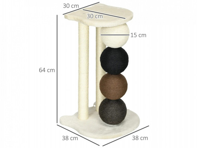 Acest stâlp de zgâriat este acoperit cu sisal culoare naturală, 4 bile mari colorate de zgâriat și un trapez moale și confortabil. Posturile de zgâriat pentru pisici sunt benefice atât pentru animale, cât și pentru proprietari, deoarece oferă un loc în care pisica își poate elibera dorința de a zgâria și de a se cățăra, protejând în același timp covoarele și mobila de uz casnic de deteriorări.