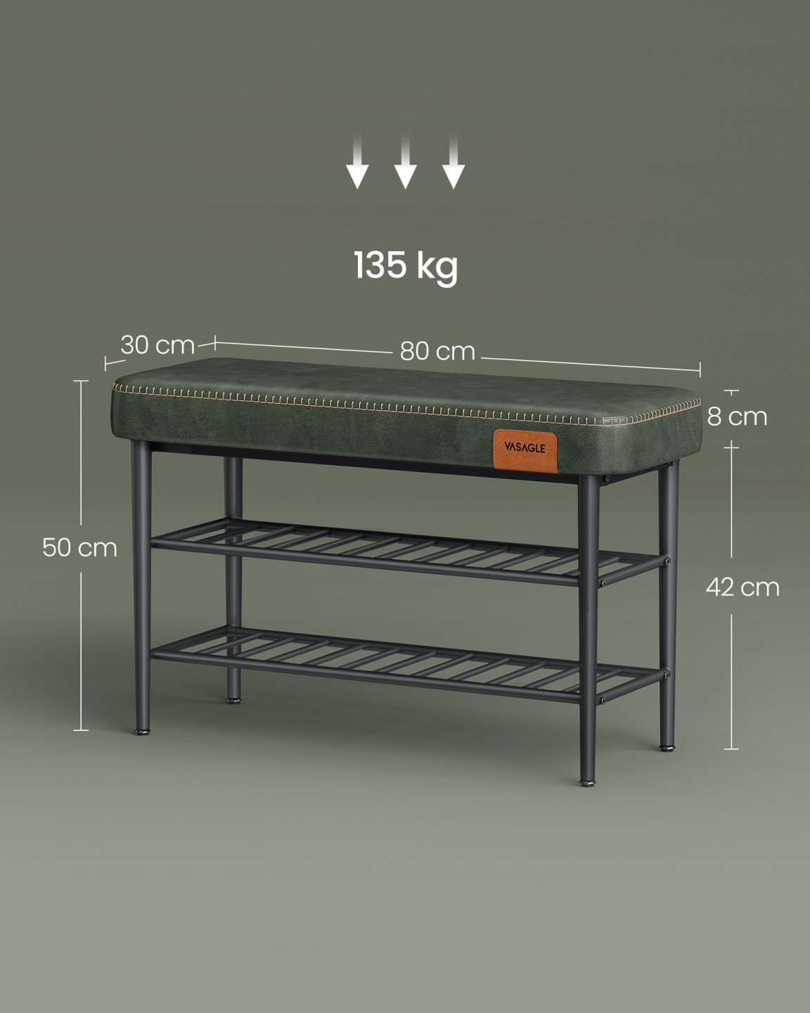 Banca cu spatiu de depozitare din imitatie piele 30 x 80 x 50 cm | verde