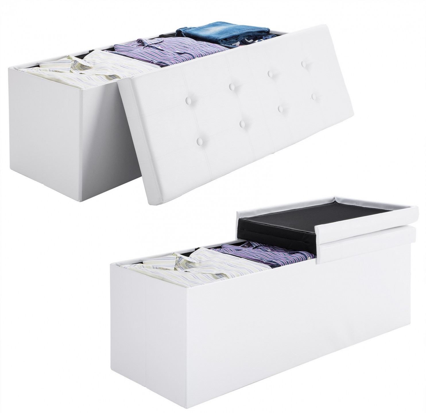 - Poate fi folosit ca o banca, suport pentru picioare, taburet sau cutie de depozitare