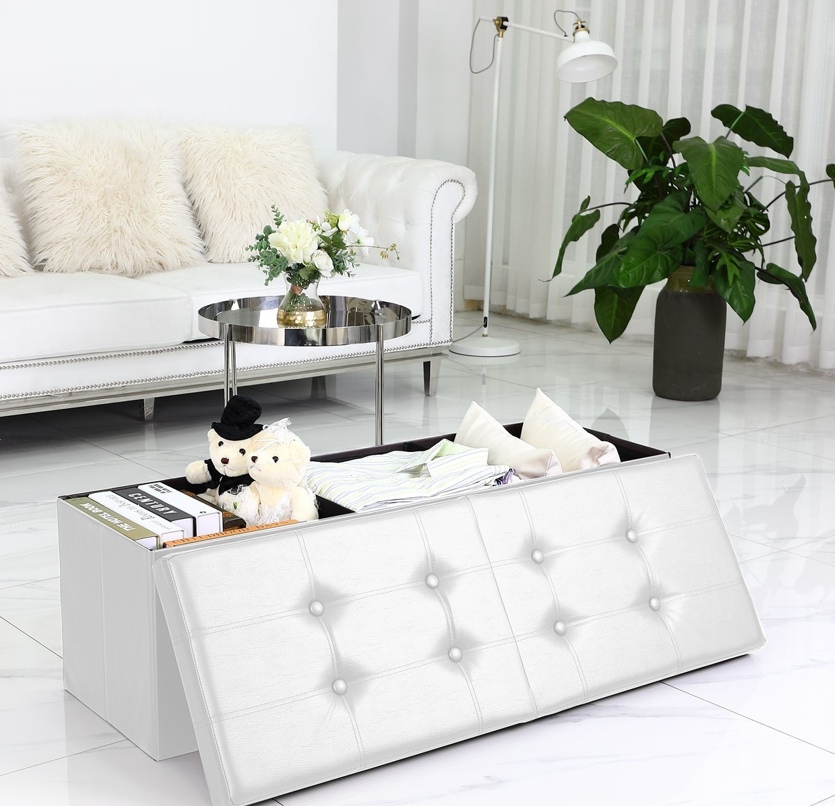 Bancă tapițată cu spațiu de depozitare 115 x 38 x 38 cm | alb