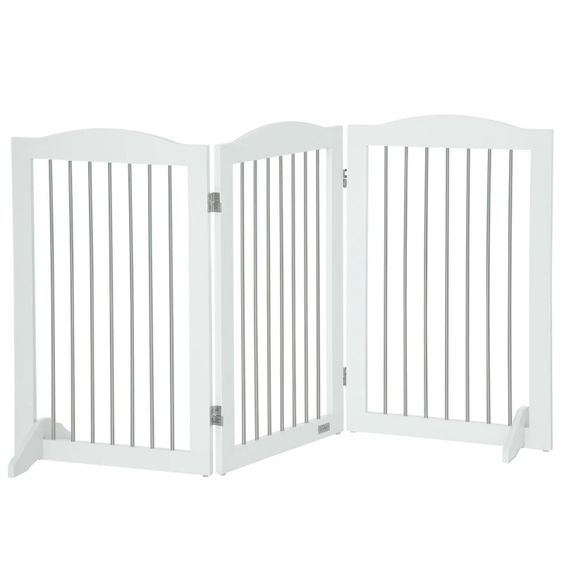 Trebuie să țineți câinii departe de anumite zone? Soluția este această grilă practică a ușii. Cu trei elemente de grilă și balamale puternice, acesta poate fi modelat într-o varietate de forme - ideal pentru uși, holuri, scări și multe altele. Rama robustă cu grilă de barieră asigură stabilitate, în timp ce picioarele late de susținere oferă stabilitate maximă. Acest țarc pentru câini cu asamblare rapidă vă va ajuta să vă faceți casa prietenoasă cu animalele de companie și să vă protejați mai bine prietenii cu patru picioare.