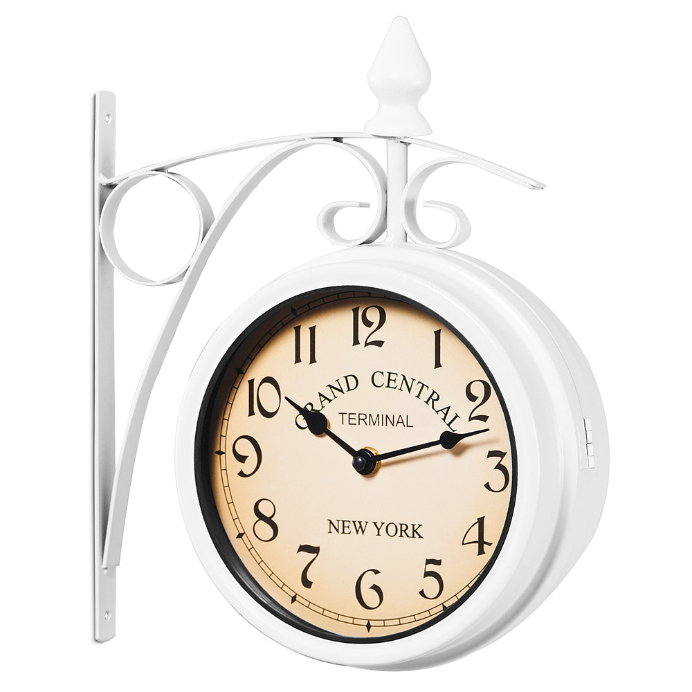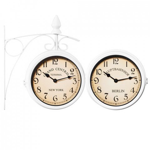 Ceasul de perete model gară va aduce stilul retro în locuința dvs. Tehnologia modernă și designul istoric redau celebra gară „New York Grand Central Station“. Punctul culminant sunt cele doua ceasuri, 2 cadrane, adică pe ambele părți, astfel încât puteți seta două ore diferite. Pentru a seta cele două ore diferite, ceasul poate fi deschis cu ușurință, la fel și pentru schimbarea bateriilor. Ceasul de perete elegant va deveni un element de neratat al locuinței dvs.