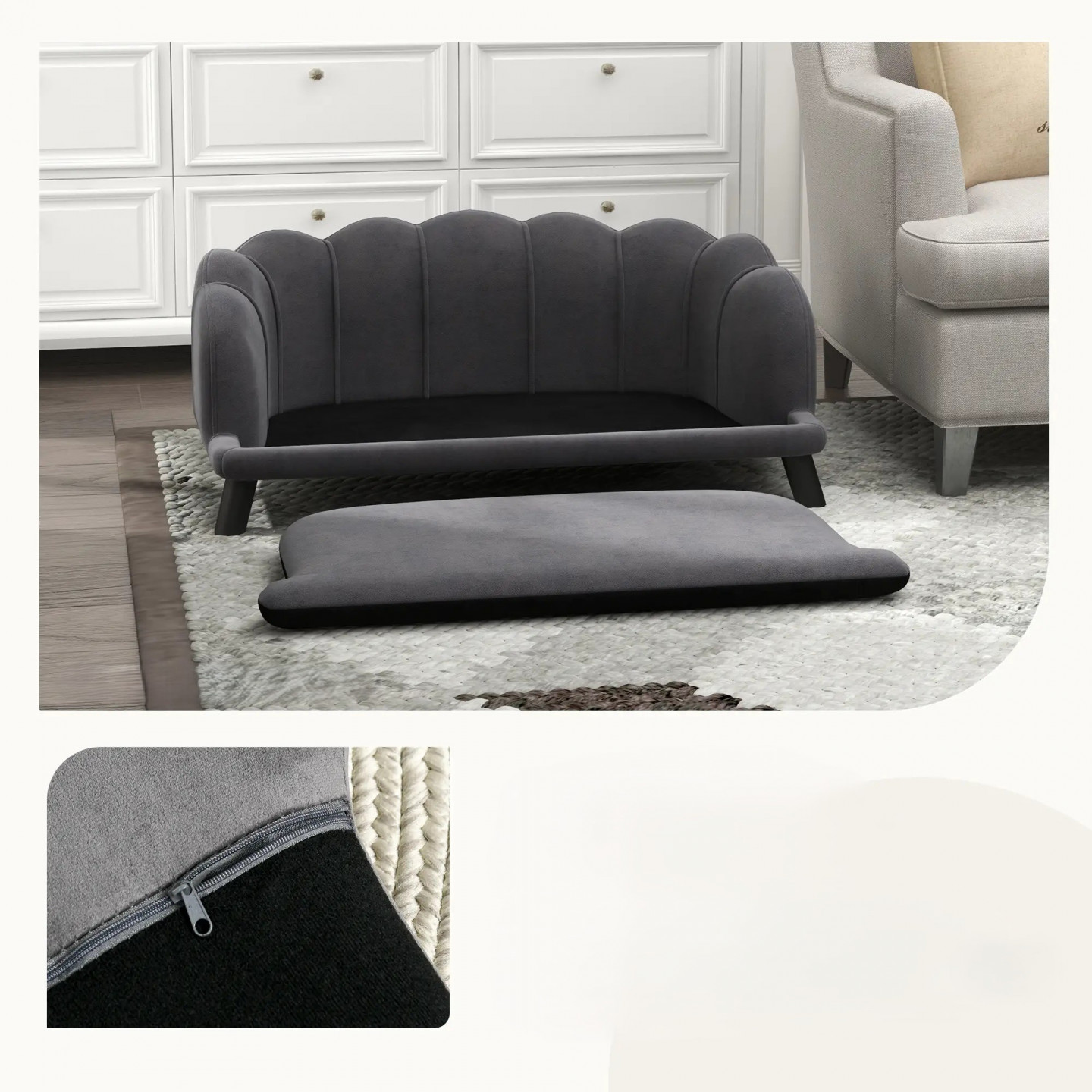 Această canapea pentru animale de companie este ideală pentru ca animalul dvs. de companie să se odihnească și să se relaxeze. O pernă groasă și o țesătură moale, cu un aspect catifelat, asigură o ședere și o relaxare confortabilă. Cu canapeaua confortabilă pentru câini, animalul dvs. de companie vă poate însoți în timp ce vizionați filme în camera de zi sau dormiți în dormitor. Prietenul dvs. drăguț cu patru picioare va fi încântat să aibă propria canapea.