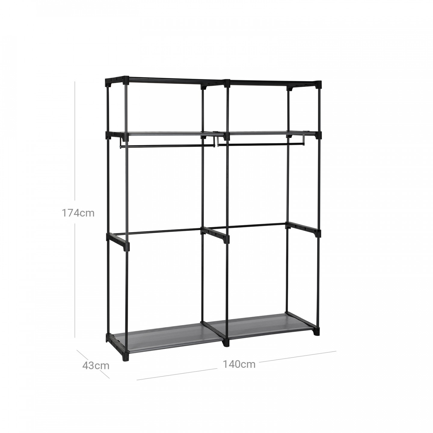 Veți îndrăgi dulapul nostru mobil. Este potrivit în special pentru dormitoare, holuri sau camere de oaspeți. Dulapul include șapte rafturi și două bare pentru umerașe, în care puteți depozita, de exemplu, accesorii de modă.