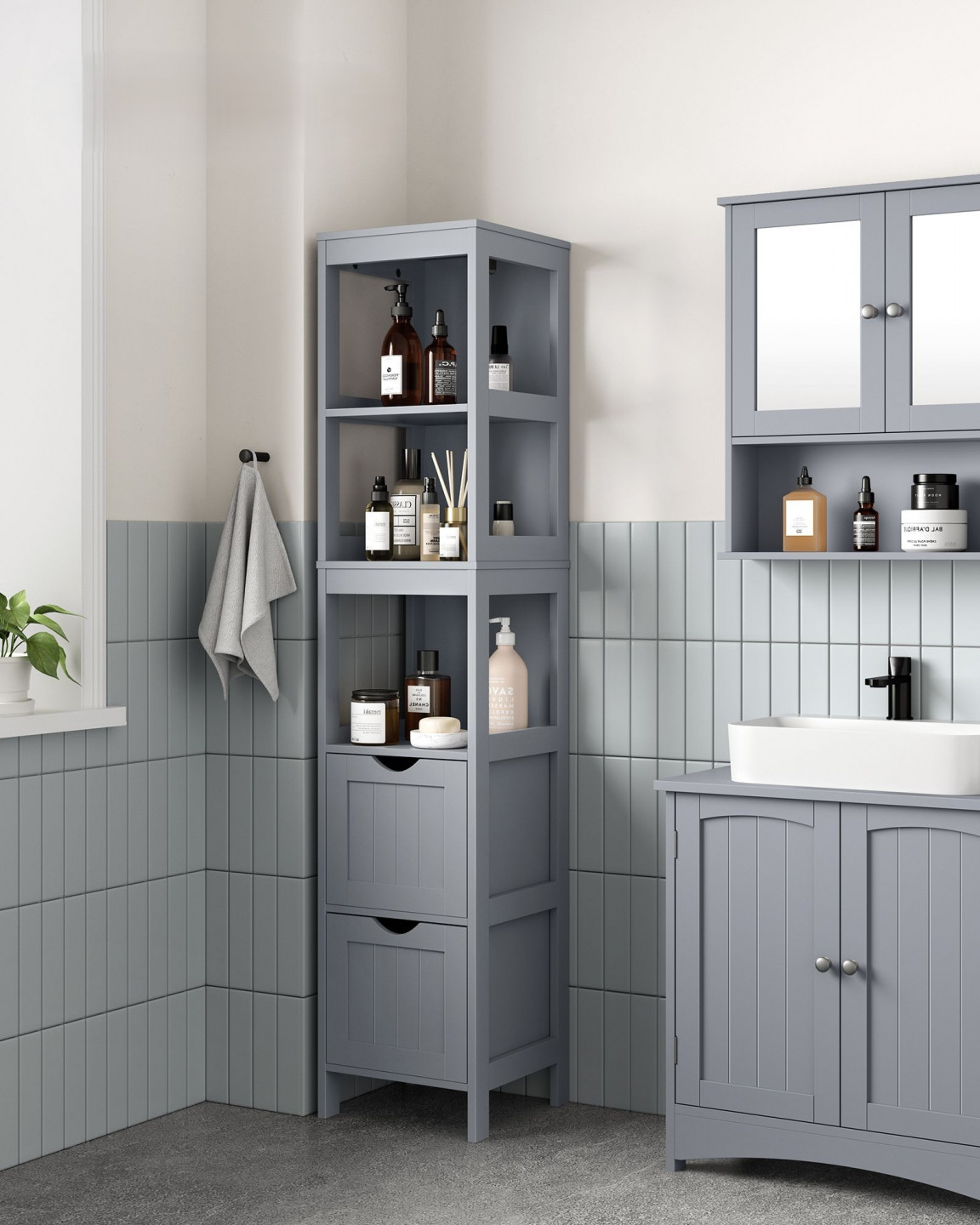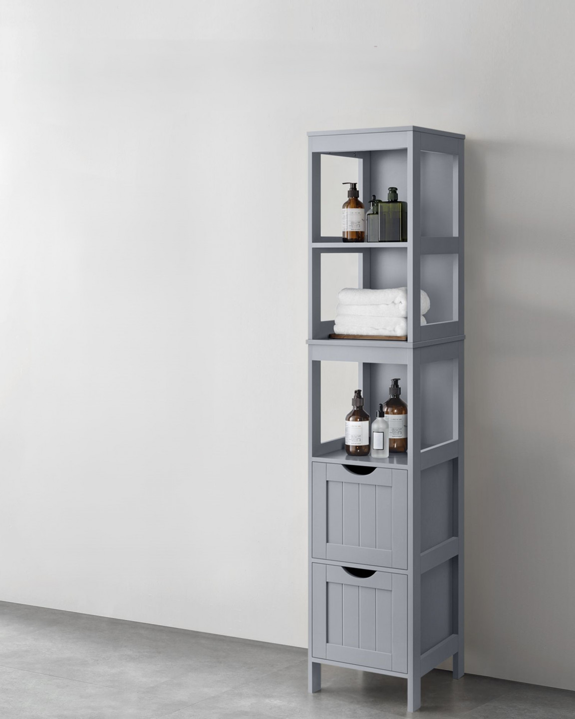 Nu neglijați colțurile băii dumneavoastră! Maximiză spațiul de depozitare – și păstrați la îndemână toate obiectele esențiale de zi cu zi – alegând acest dulap îngust, independent, cu dimensiunile de 29,8 x 29,8 x 147,4 cm. Datorită sertarelor flexibile, vă puteți personaliza spațiul de depozitare în funcție de nevoi.