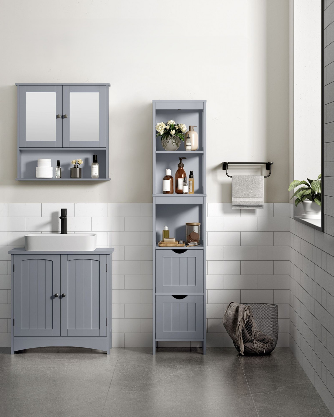 Dulap îngust pentru baie 30 x 30 x 141,5 cm | gri