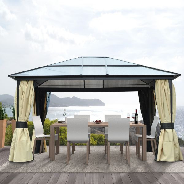 Pavilion de lux pentru grădină, cu acoperiș policarbonat 4,3 x 3,6 m | bej