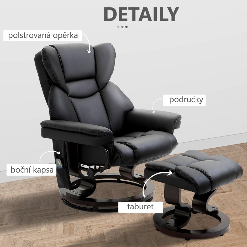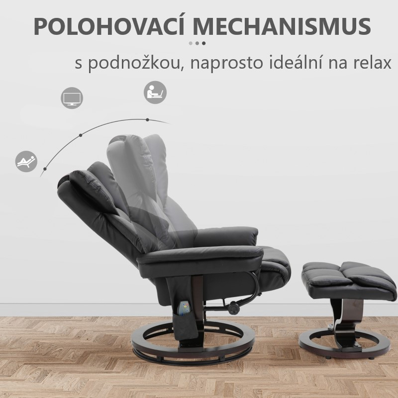 Fotoliu de masaj TOP cu suport pentru picioare | negru