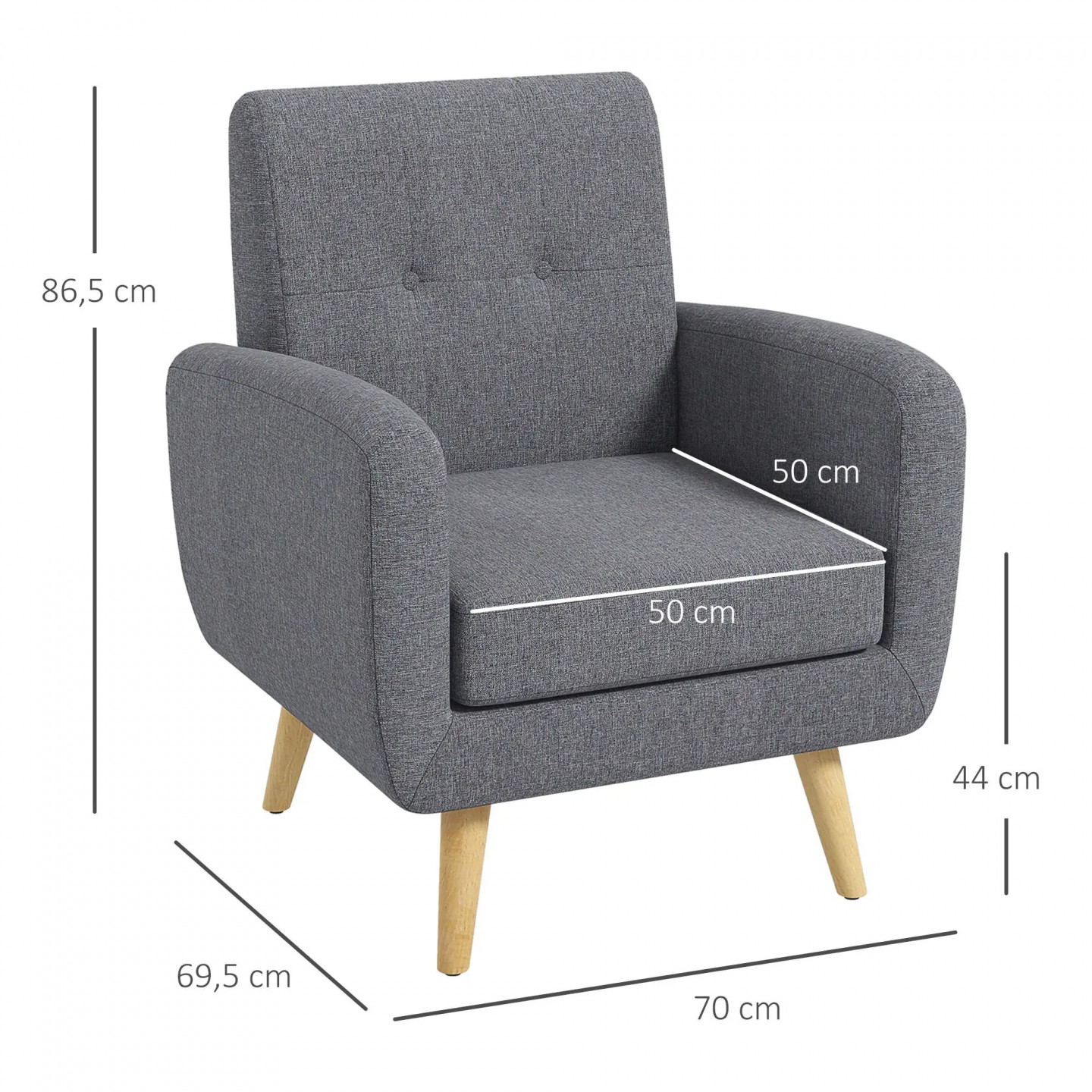 Fotoliu tapițat cu pernă 70 x 69,5 x 86,5 cm | gri deschis