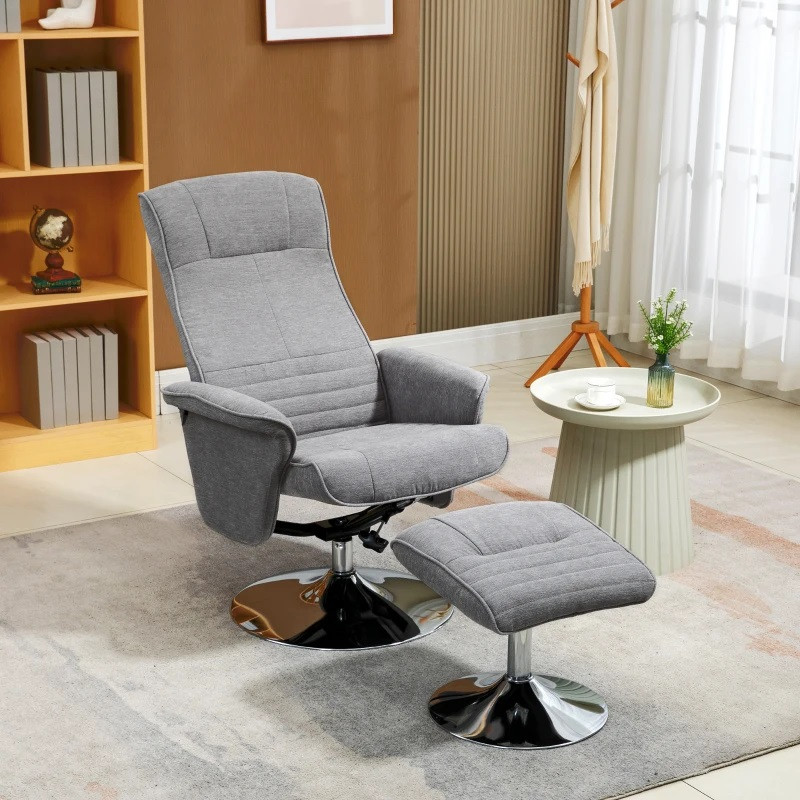 Fotoliu TV pivotant ?i suport pentru picioare | gri