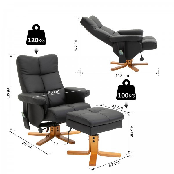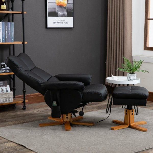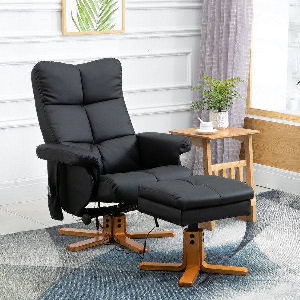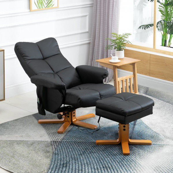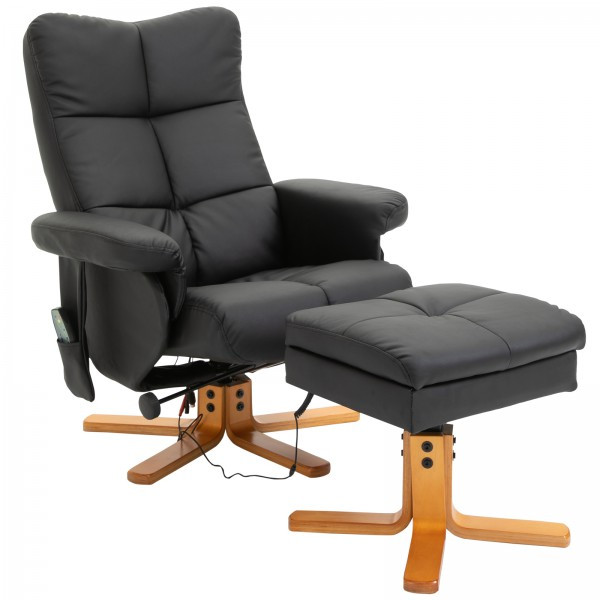 Fotoliu de masaj Scott cu taburet pentru picioare | negru