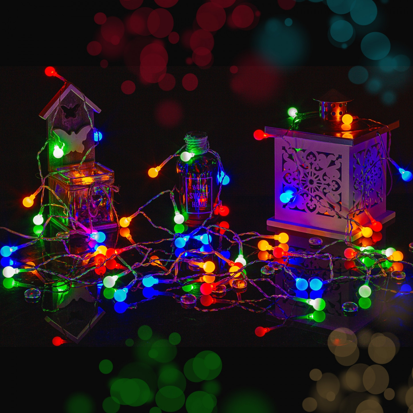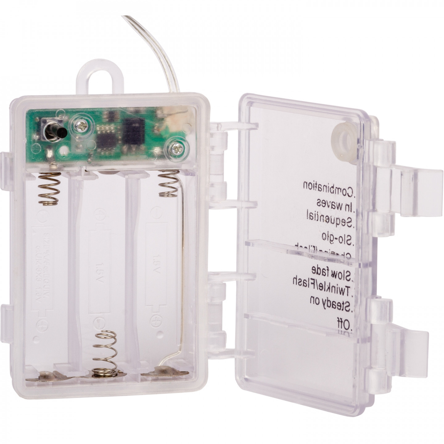 Șiragul conține 8 efecte de lumină: diverse combinații, iluminare în unde, iluminare secvențială, strălucire lentă, intermitent rapid, diminuare lentă, intermitent strălucitor, iluminare constantă.