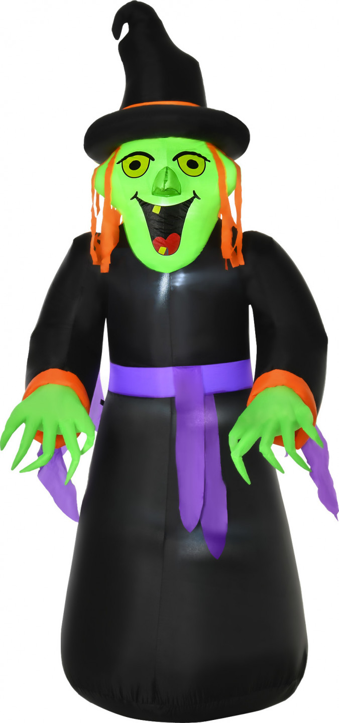 •  Designul la modă al vrăjitoarei gonflabile creează o atmosferă de groază