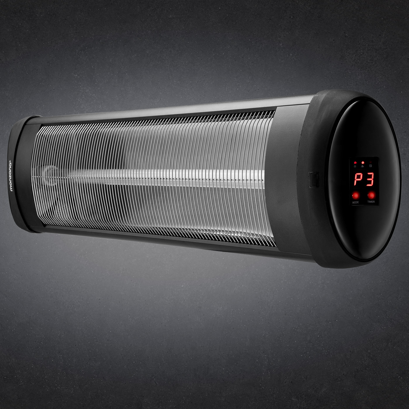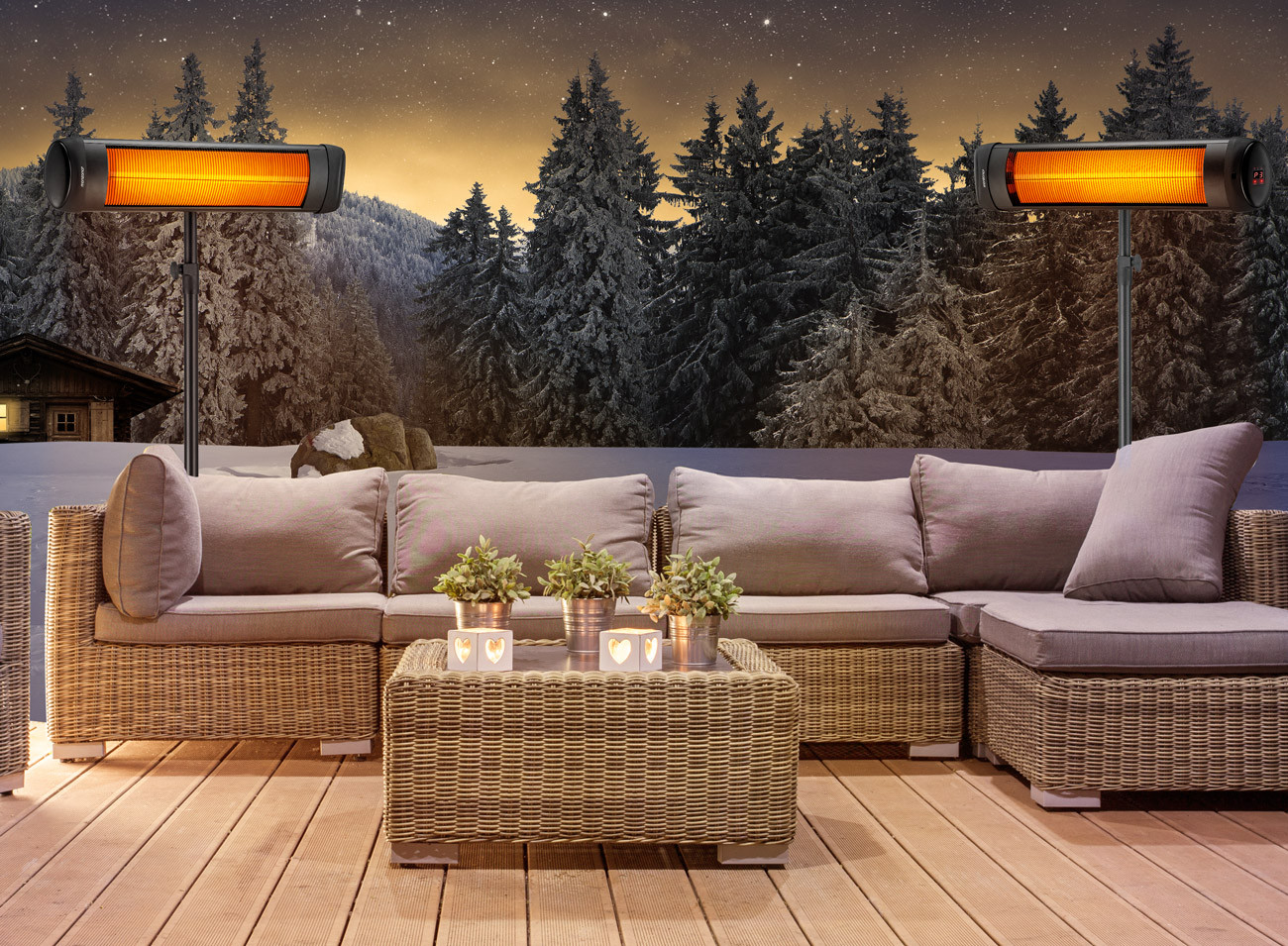 Încălzitorul practic, cu afișaj LED ușor de citit, este special conceput pentru utilizarea în aer liberCarcasa din aluminiu anodizat turnat sub presiune este rezistentă la ploaie (IP 34) și a fost testată de GS TÜV Rheinland ID 1111243403.