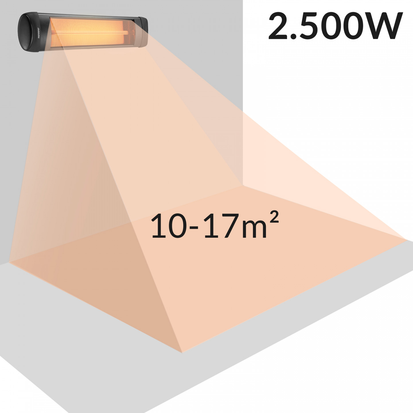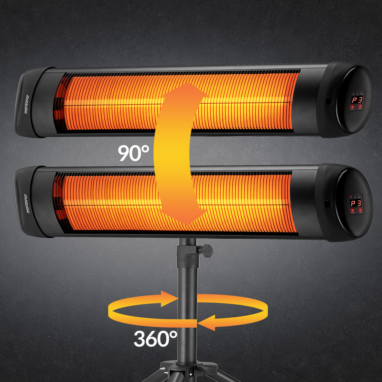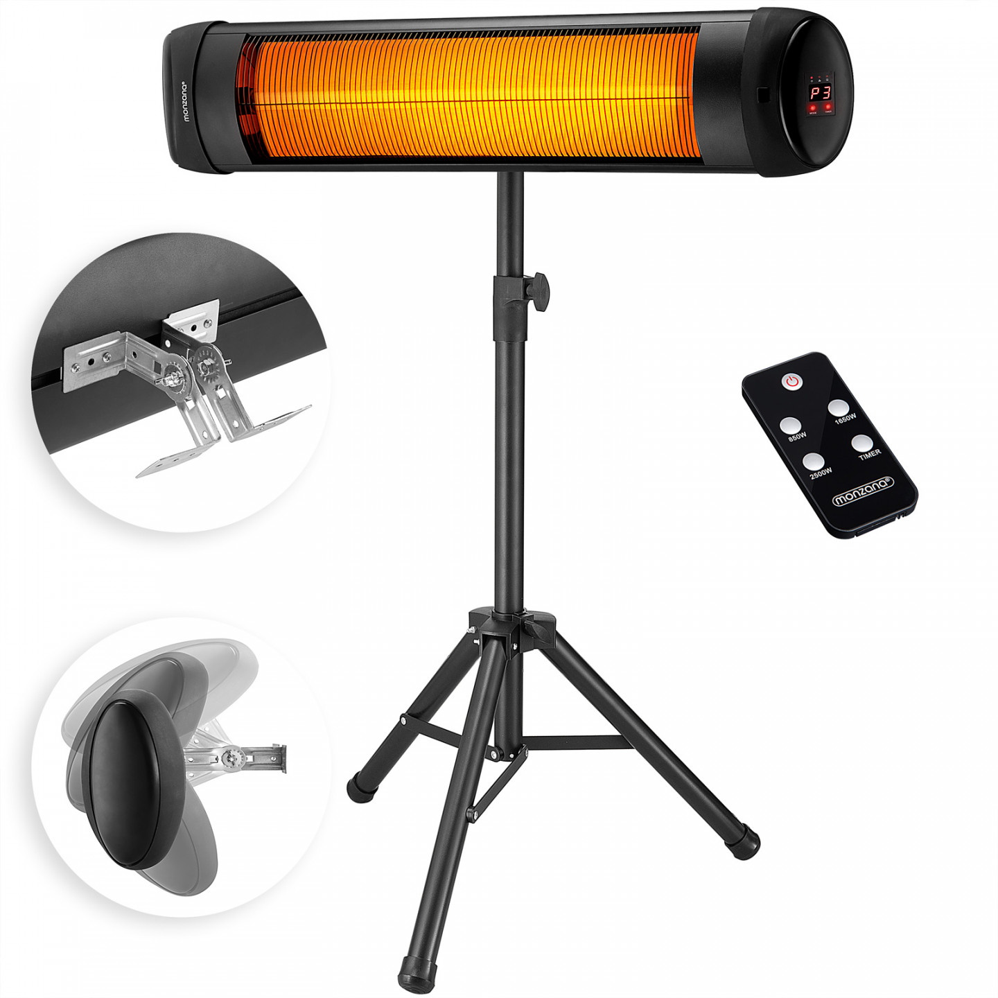 Încălzitorul radiant modern de 2500 W permite încălzirea eficientă și rapidă a spațiului exterior. Avantajul dispozitivului este că se încălzește fără miros și absolut fără zgomot. Cu ajutorul telecomenzii puteți alege între 3 etape de încălzire.  Datorită suportului telescopic de înaltă calitate (aprox. 110-175 cm), utilizarea sa va fi și mai flexibilă.