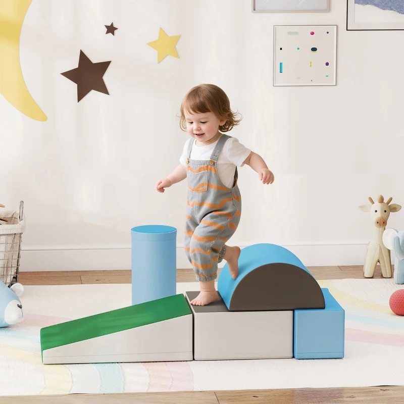 - Conceput pentru a permite sugarilor și copiilor mici să urce, să se târască, să exploreze și să alunece folosind blocuri de construcție moi