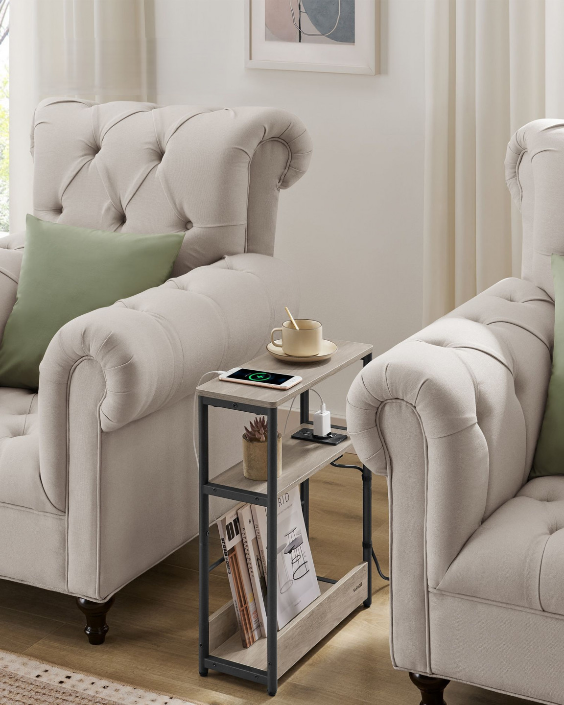 Tento obdélníkový odkládací stolek v moderním stylu krásně zapadne do vašeho obývacího pokoje či ložnice. Odkládací stolek s rustikální deskou a kovovými policemi vypadá velmi elegantně a bude se vyjímat v každém interiéru.