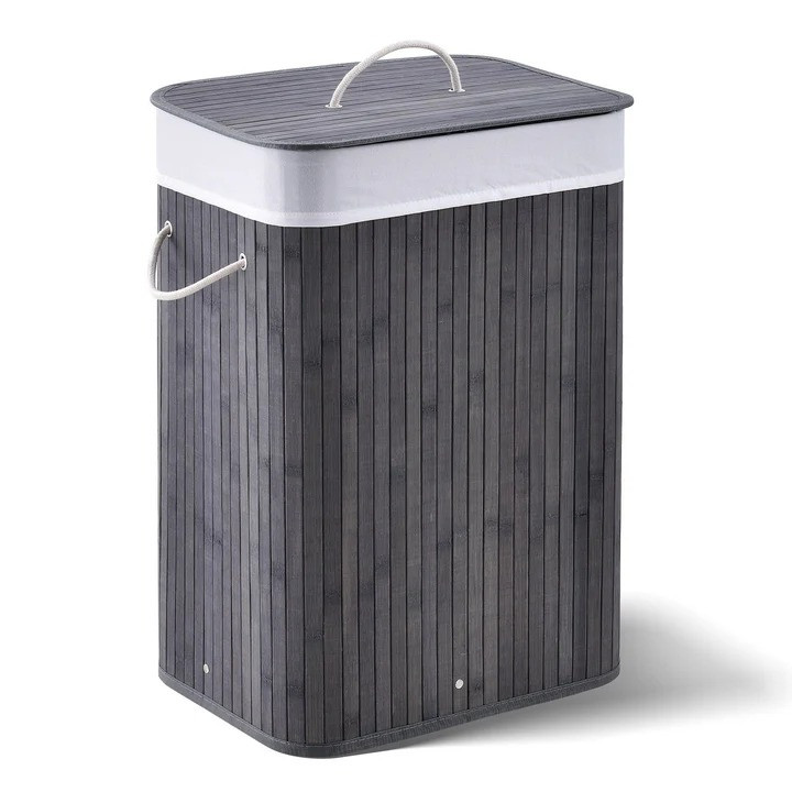 Bambusový koš na prádlo s víkem 72 L | šedý