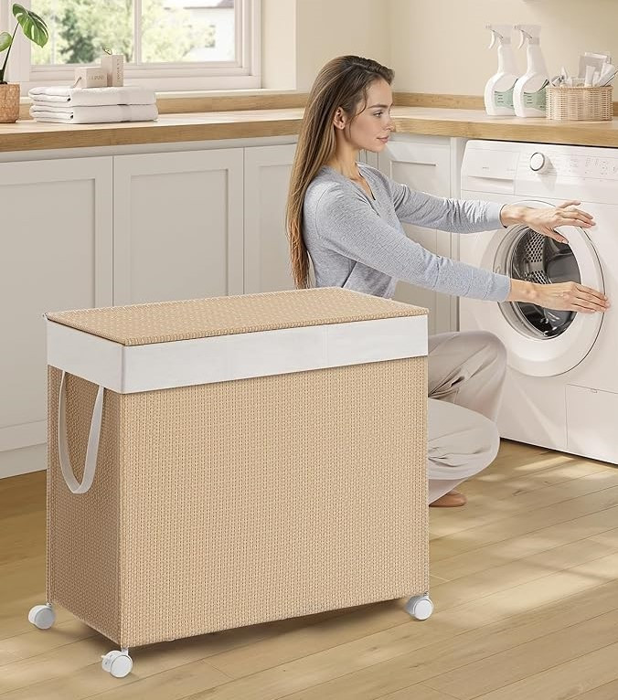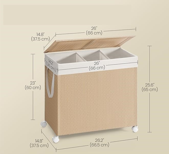 Mult spațiu de depozitare pentru sortare: cu o capacitate de 140 litri, acest coș pentru rufe oferă suficient loc. Cele 2 compartimente vă ajută să separați rufele în funcție de culoare sau tip.