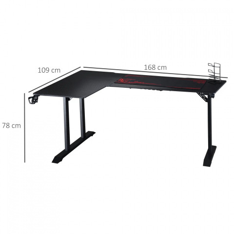 Masă de joc în formă de L 168x109x78 cm | negru + roșu