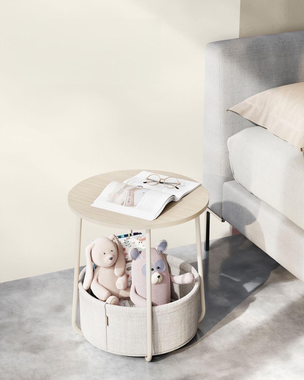 Kulatý konferenční stolek s košíčkem Ø 45 cm | krémově bílý