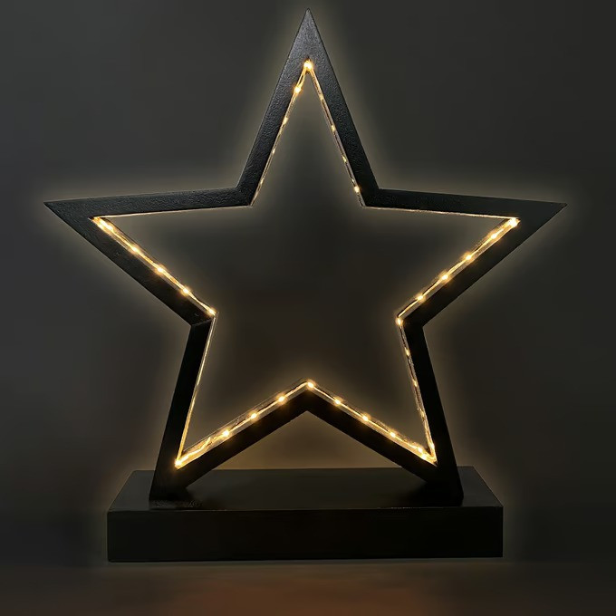 Stea decorativă LED din lemn | neagră