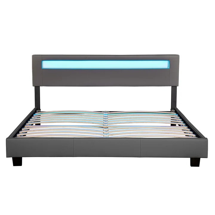 Pat tapițat Paris cu iluminare LED 180 x 200 cm | gri închis