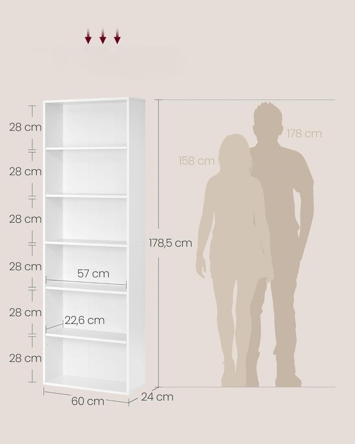 Raft bibliotecă cu 6 niveluri 24 × 60 × 178,5 cm | alb