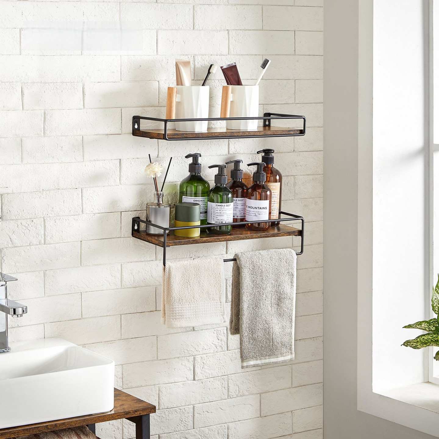 Nástěnná police 2-dílný set | rustikální hnědá, černá