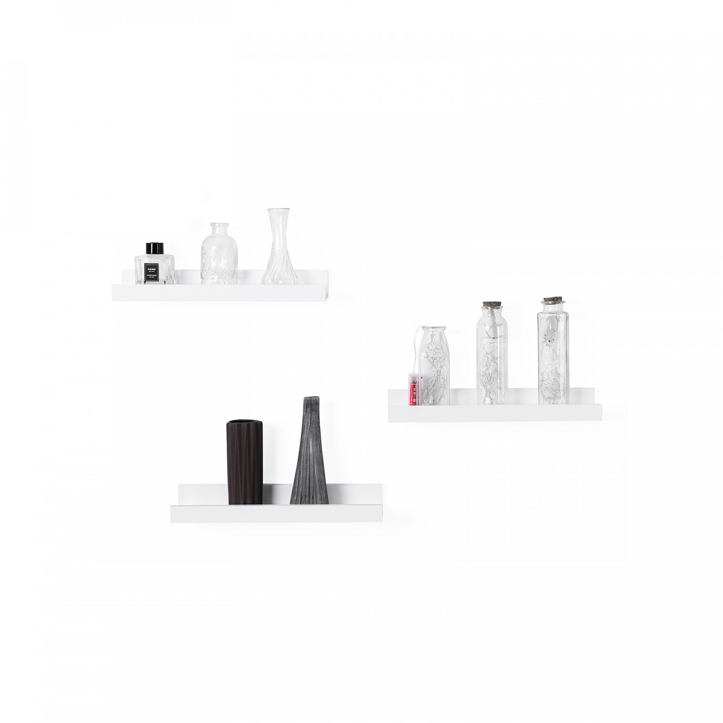 Tyto 3 police s bílým lesklým povrchem flexibilně zkombinujte a vytvořte jedinečnou nástěnnou dekoraci a zároveň si vytvořte další úložný prostor pro vaše dekorace nebo koření.