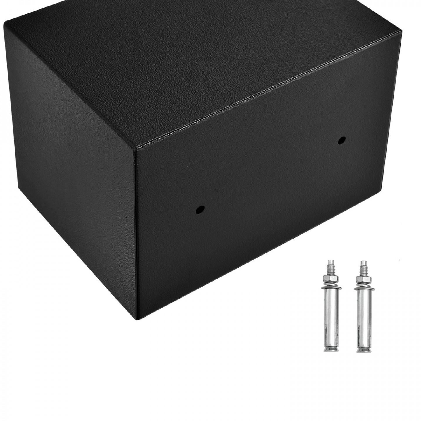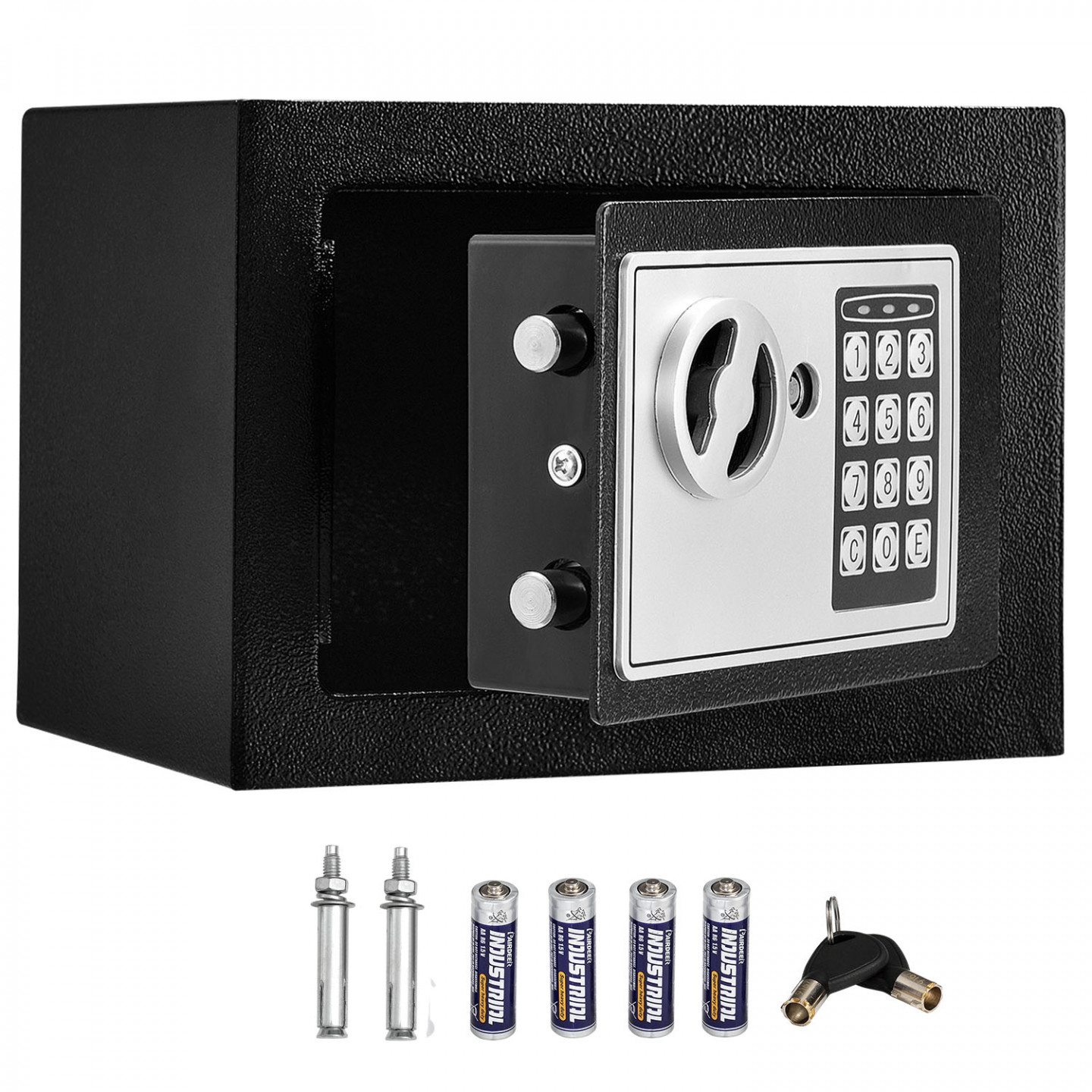Seif metalic cu cifru electronic si cheie, pentru acte, casa de bani, cutie de valori, 23 x 17 x 17 cm | negru