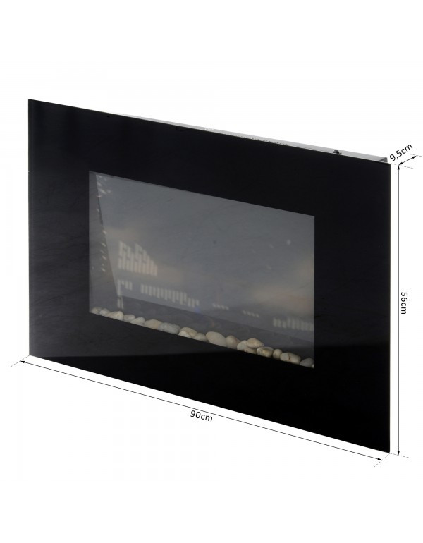 Șemineu electric de perete cu efect flăcări LED 1000/2000W | negru