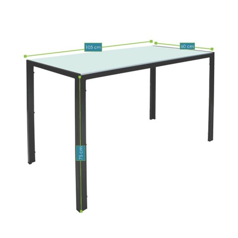 Masa cu blatul din sticlă temperată se înalta pe picioarele solide din otel și plastic, care îi conferă stabilitate optimă și o durată de viață foarte lungă. Foarte ușor de curățat: este de ajuns doar un șervețel umed.