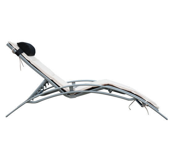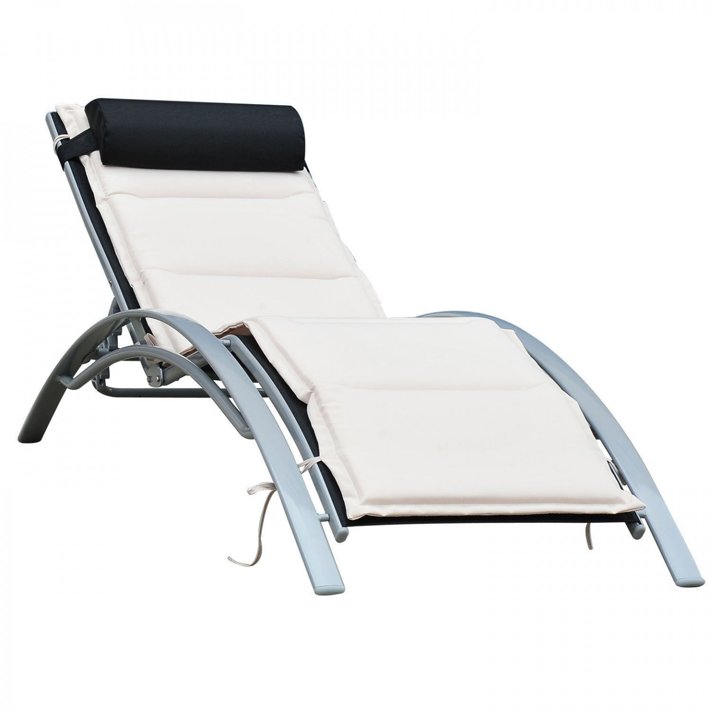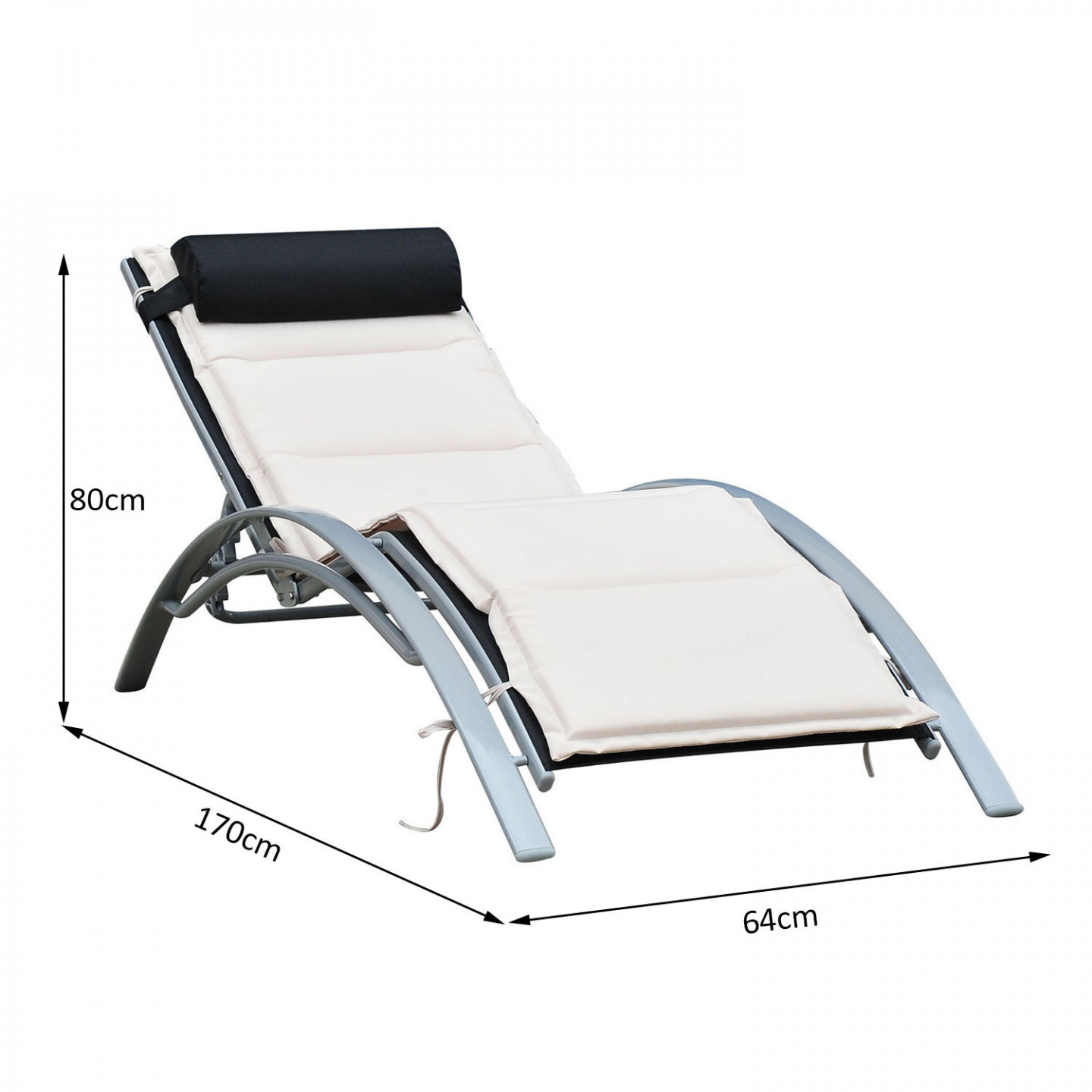 Șezlong din aluminiu cu design ergonomic practic, cu pernă moale albă și pernă pentru cap. Spătarul poate fi reglat în 4 poziții pentru un confort și mai mare. Șezlongul elegant este potrivit pentru utilizare în interior și în exterior - în grădină, pe terasă, dar și în saună sau în spa.