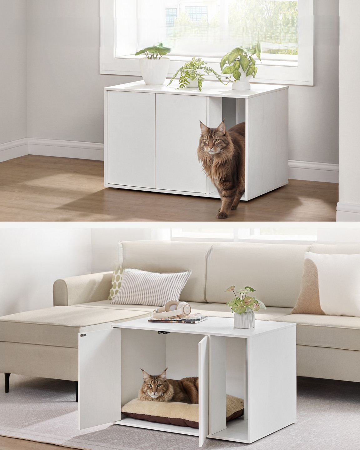 Skvělé řešení pro chovatele koček, kteří chtějí skloubit praktičnost a estetiku. Tato elegantní bílá skříňka je navržena tak, aby poskytla soukromí vaší kočce a zároveň udržela prostor čistý a stylový.