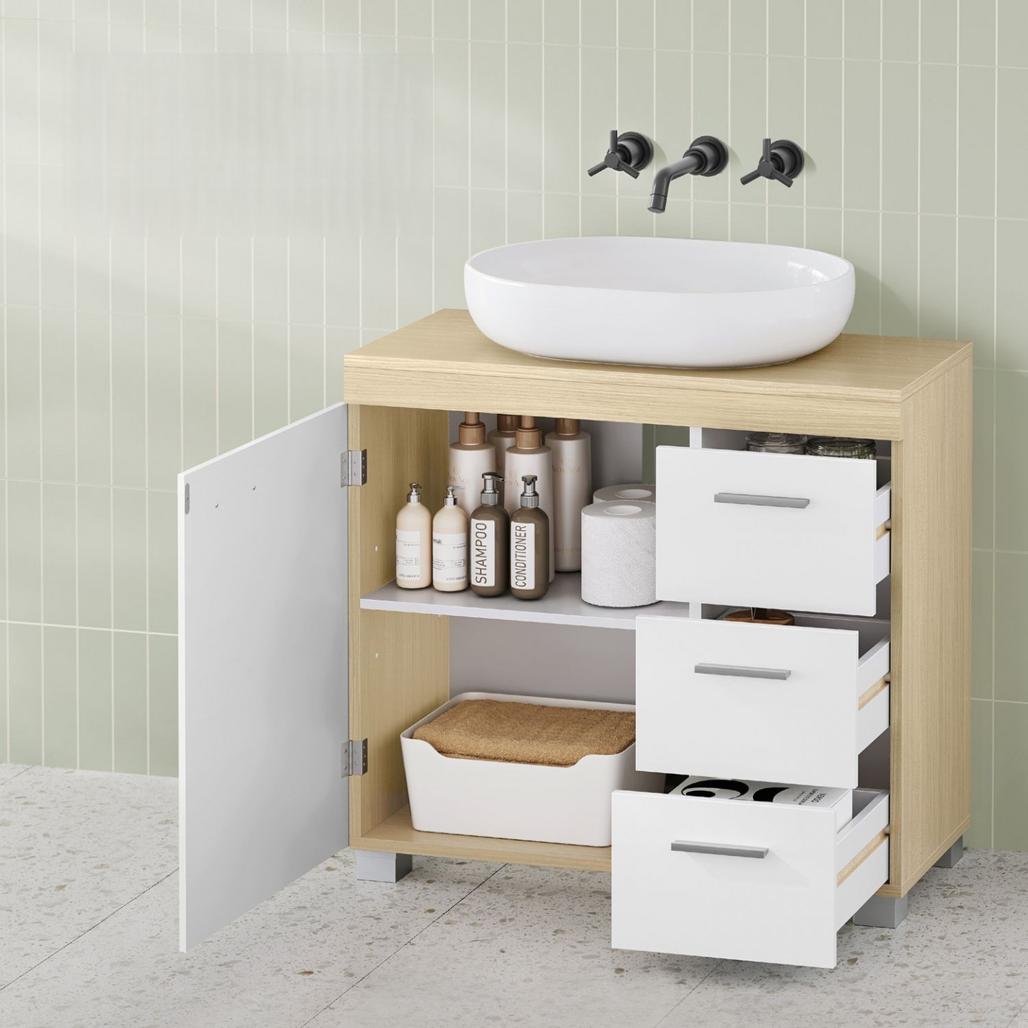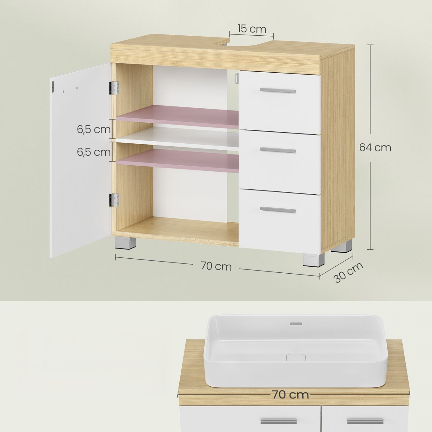 Dulap de baie pentru chiuvetă 30 x 70 x 64 cm | alb – natur