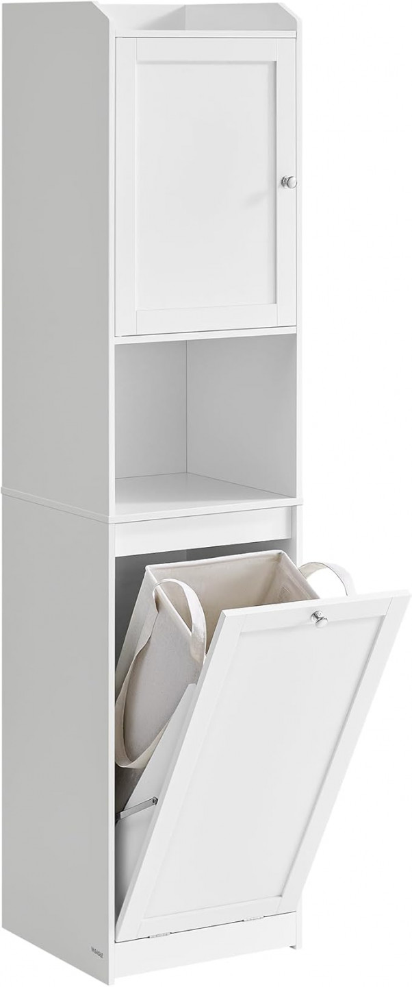 Vysoká koupelnová skříňka s košem na prádlo | bílá