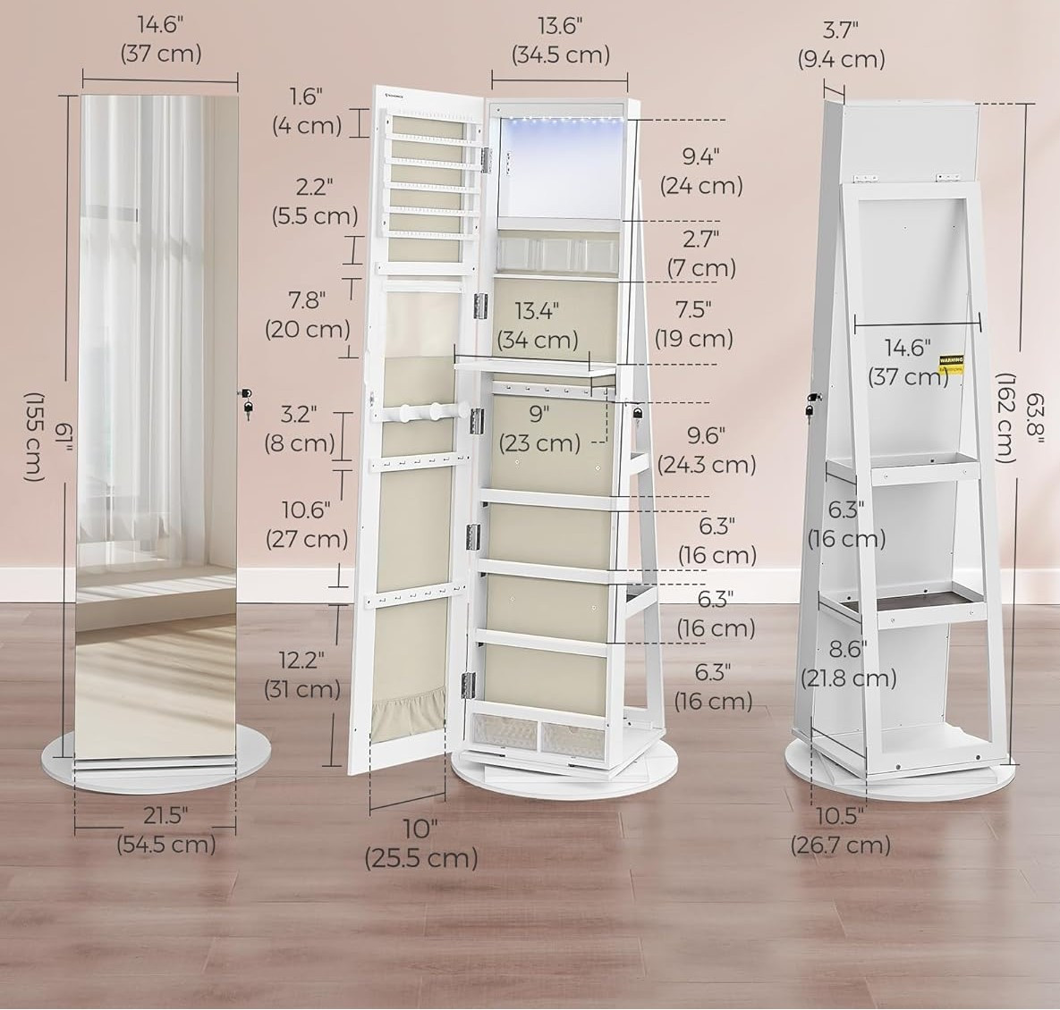 Otočná uzamykatelná šperkovnice se zrcadlem je elegantní a praktická organizér pro vaše šperky a doplňky, která kombinuje bezpečné uložení s efektním designem a pohodlným přístupem.