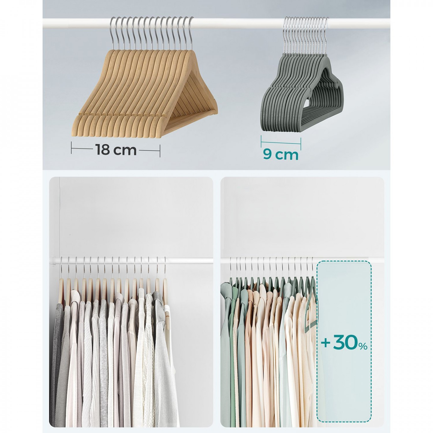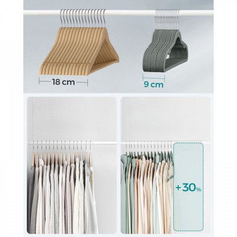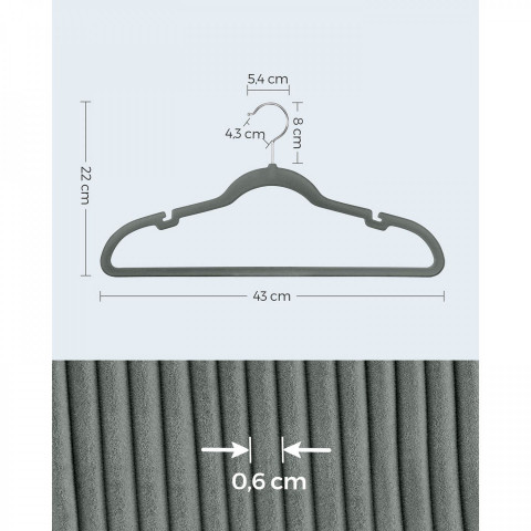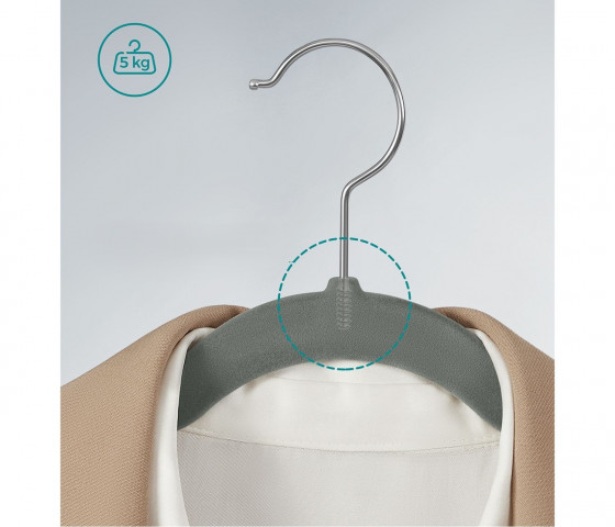 Aceste umerașe elegante din plastic au o suprafață catifelată, foarte subțire, care nu deteriorează hainele și le menține în formă perfectă. Fantele antiderapante în formă de U și bara antiderapantă pentru pantaloni împiedică alunecarea hainelor și a pantalonilor.