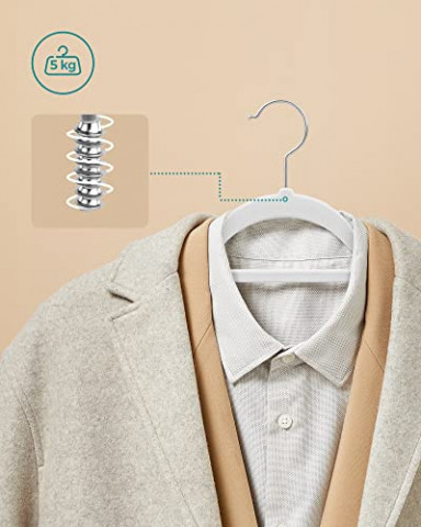 Aceste umerase elegante din plastic au un finisaj catifelat, care nu va va deteriora hainele si le mentine în forma. Fantele antiderapante în forma de U si bara antiderapanta pentru pantaloni împiedica alunecarea hainelor si a pantalonilor.
