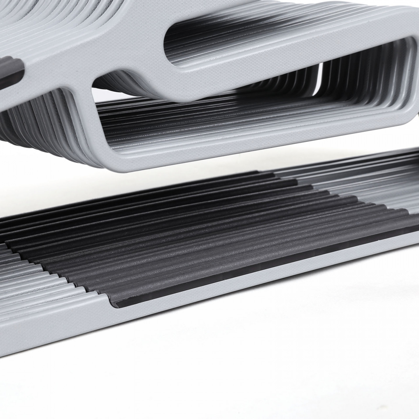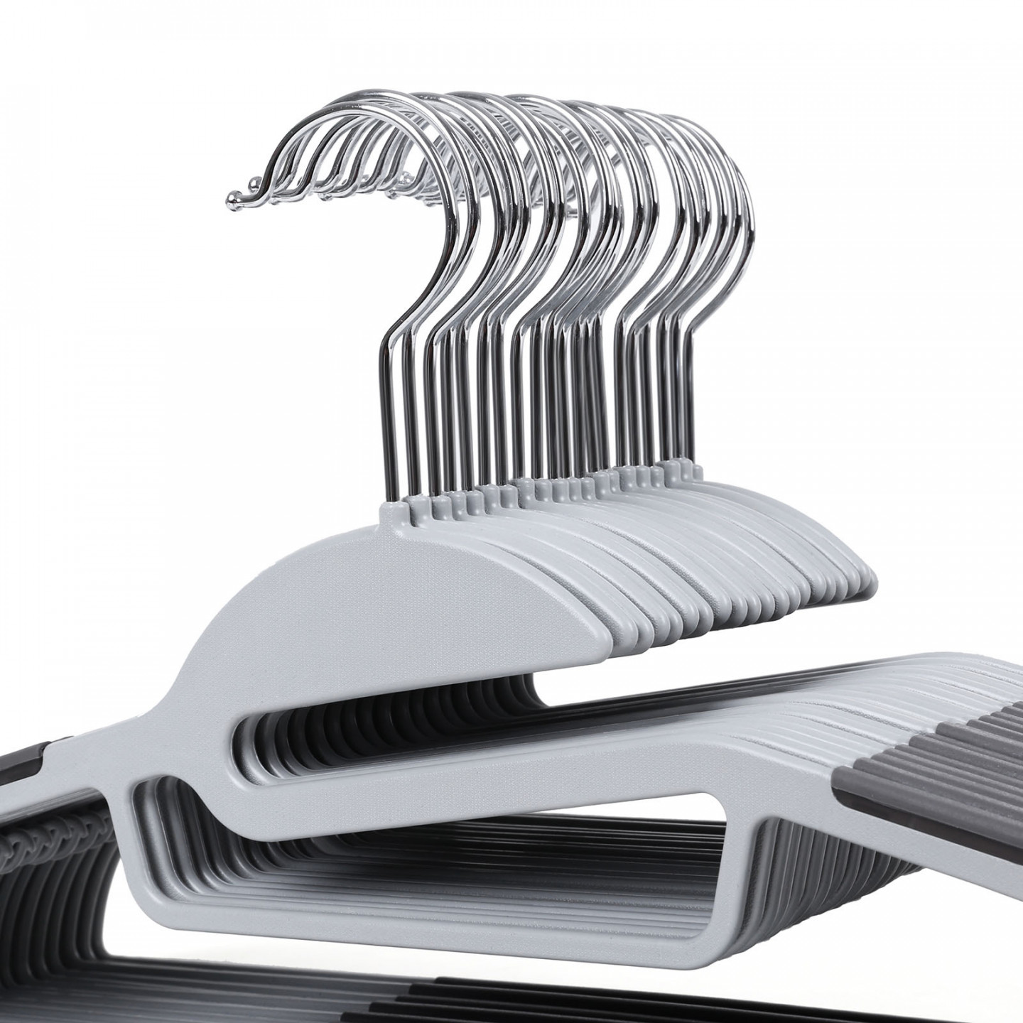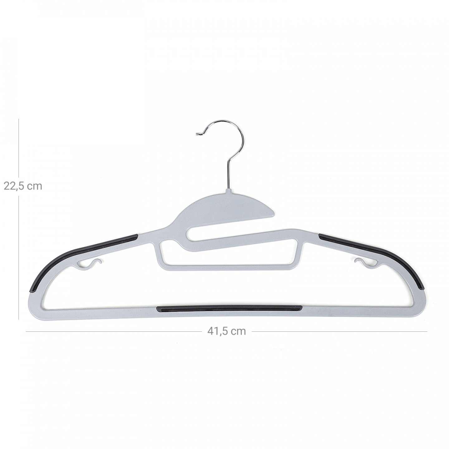 Tato elegantní ramínka z plastu mají hladký a velice tenký povrch, který nepoškodí vaše oblečení a udrží je ve špičkovém tvaru. Protiskluzové štěrbiny ve tvaru U a protiskluzová lišta na kalhoty zabraňují klouzání oblečení a kalhot.