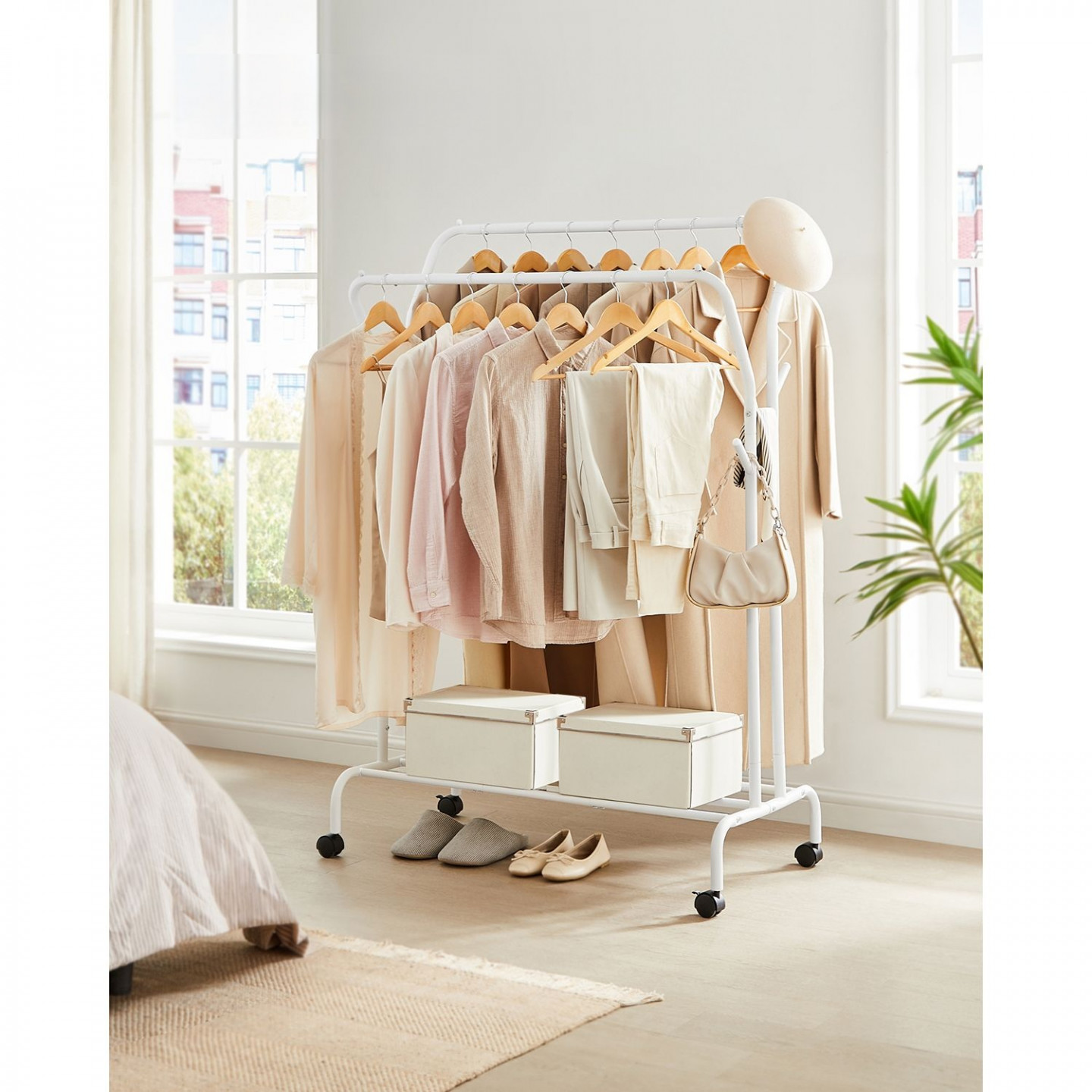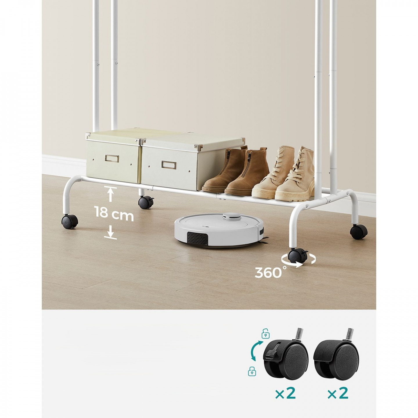 Pojízdný stojan na oblečení na kolečkách 155 x 103,5 x 52,5 | bílý