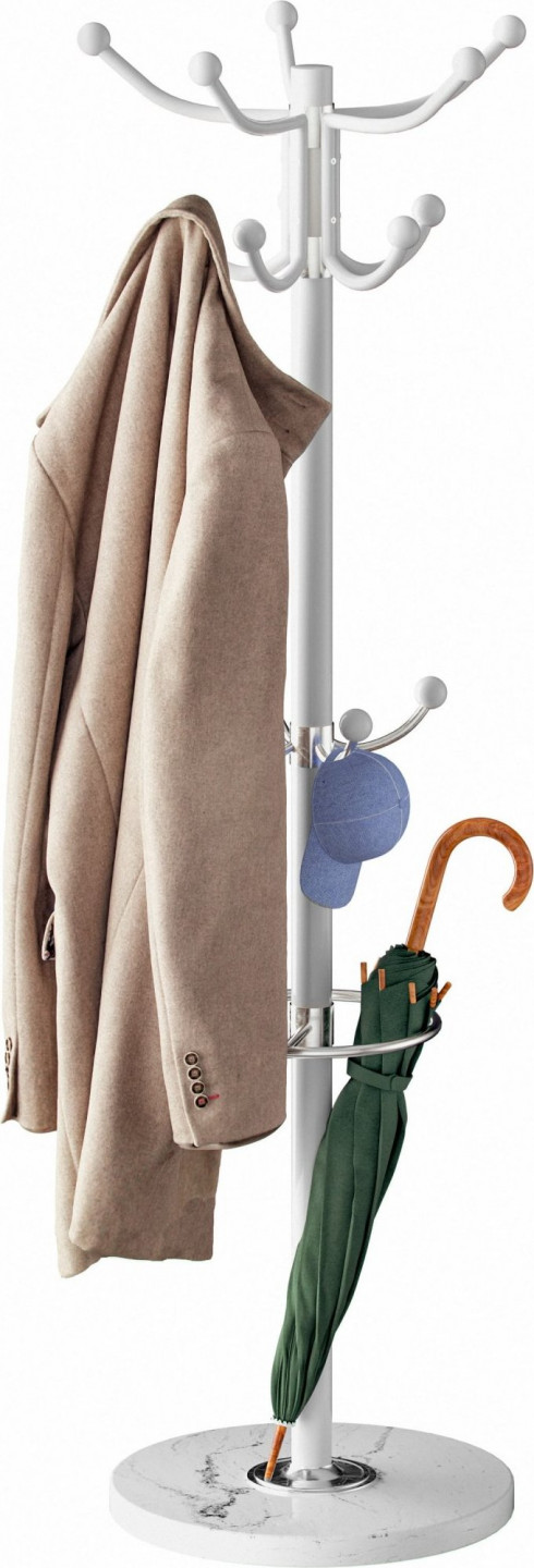 Cuier pentru haine alb cu bază din marmură, 173 cm