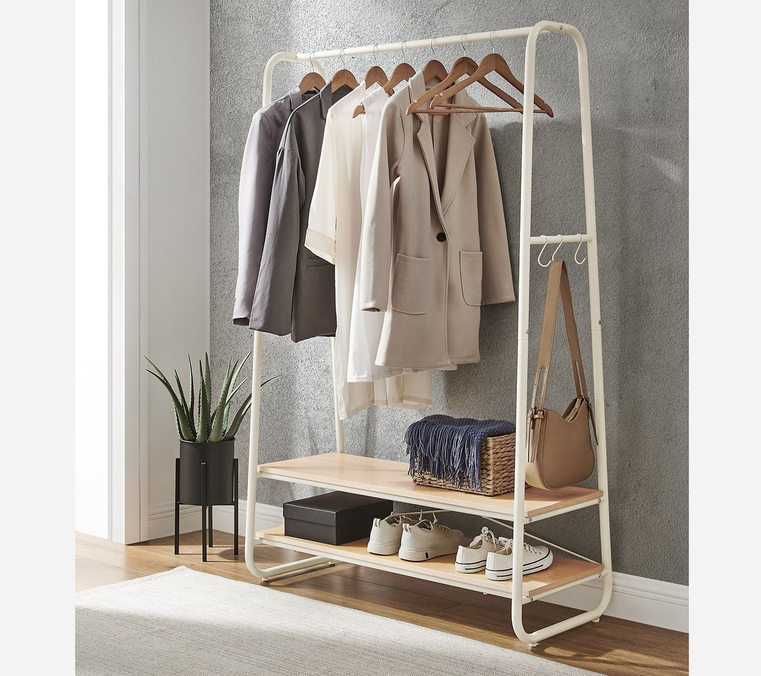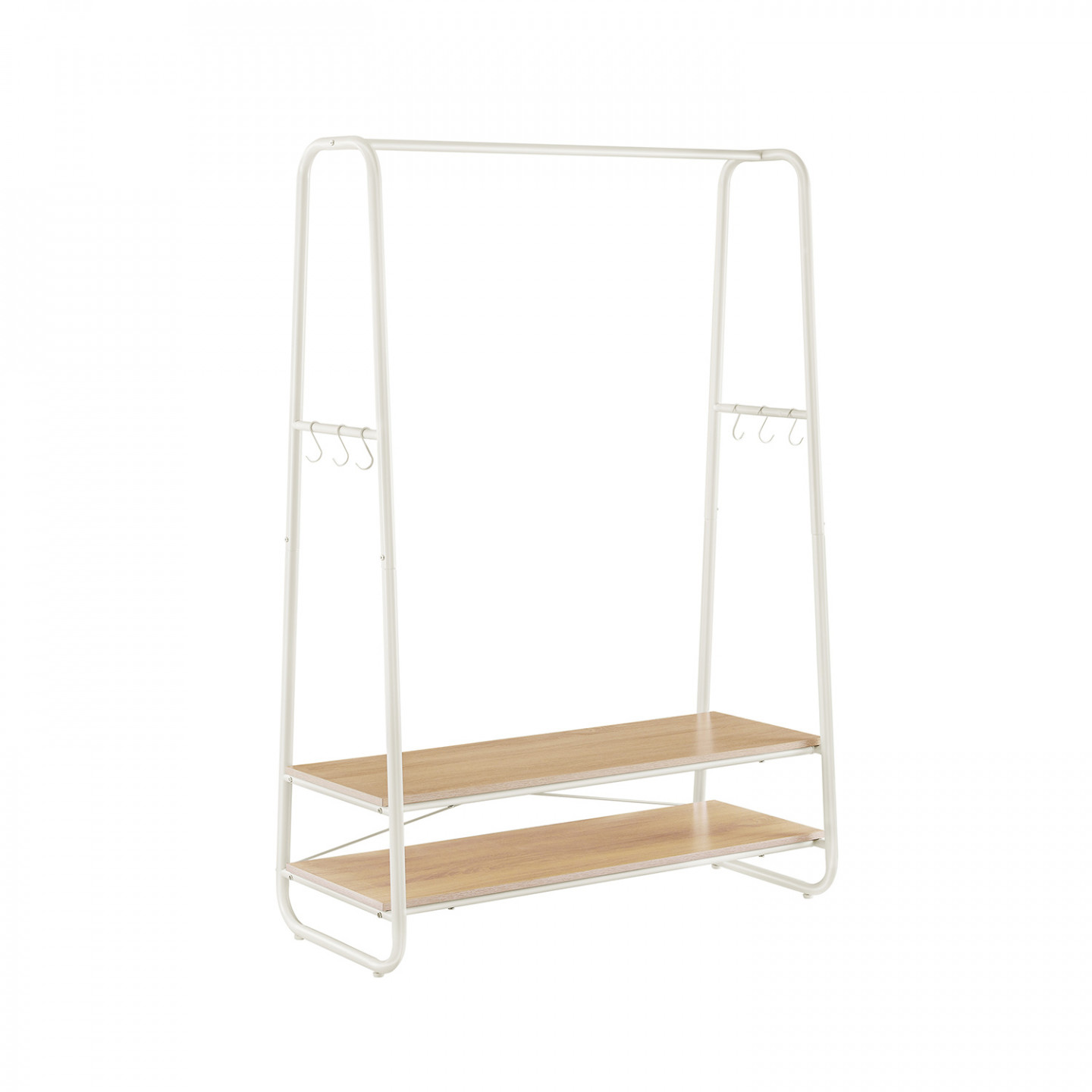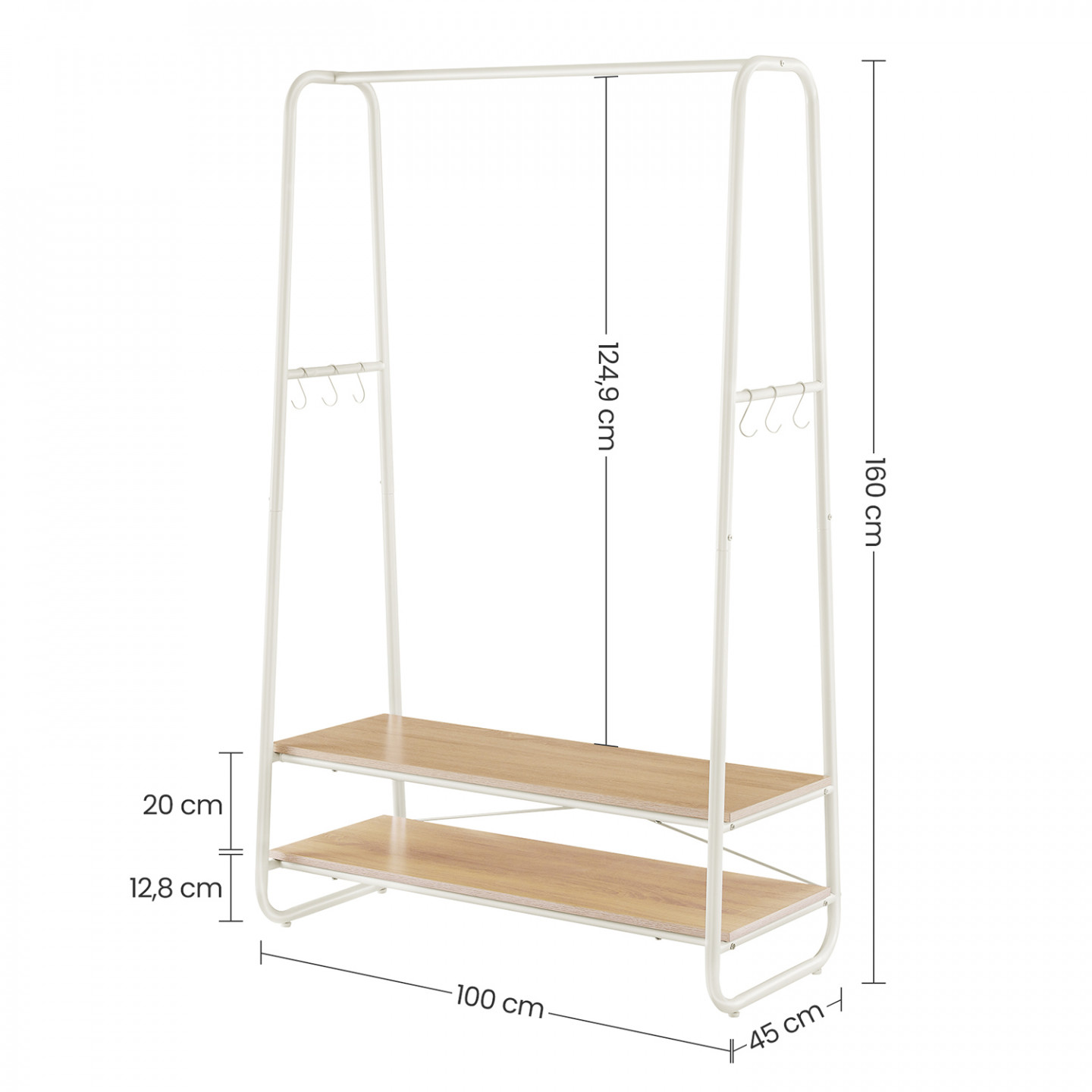 Cuier pentru haine cu 2 rafturi | alb, stejar